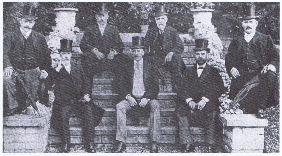 The only pictures I’ve seen of Albert Bullock were when he was complete with a top hat and a wing collar shirt, so I really couldn’t call him by his first name. I can’t imagine him as an Al or Bert so the best I can do is call him AB! He was chairman of the parish council and was so instrumental in achieving our Carnegie Library. I’d like to think that he was a real character in the smoke-filled rooms of the parish council though! The attached photograph from 1903 (AB is far left with umbrella) shows the members of the Whitchurch School Board. Just the thing for a Christmas Card!